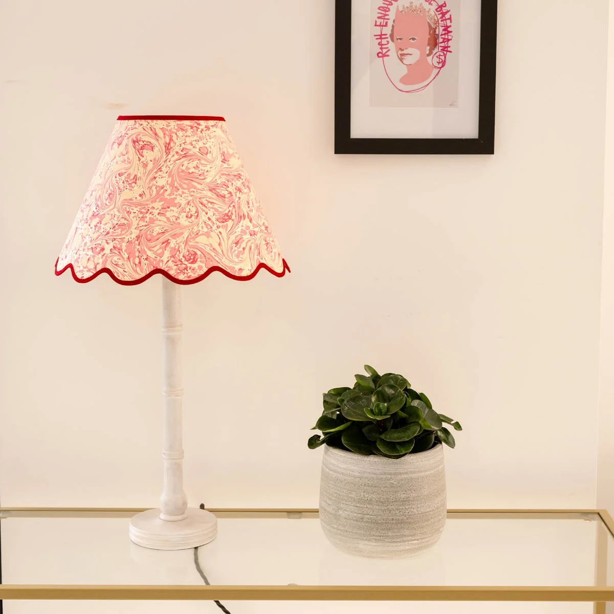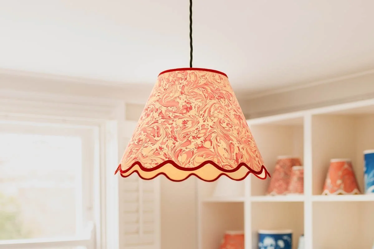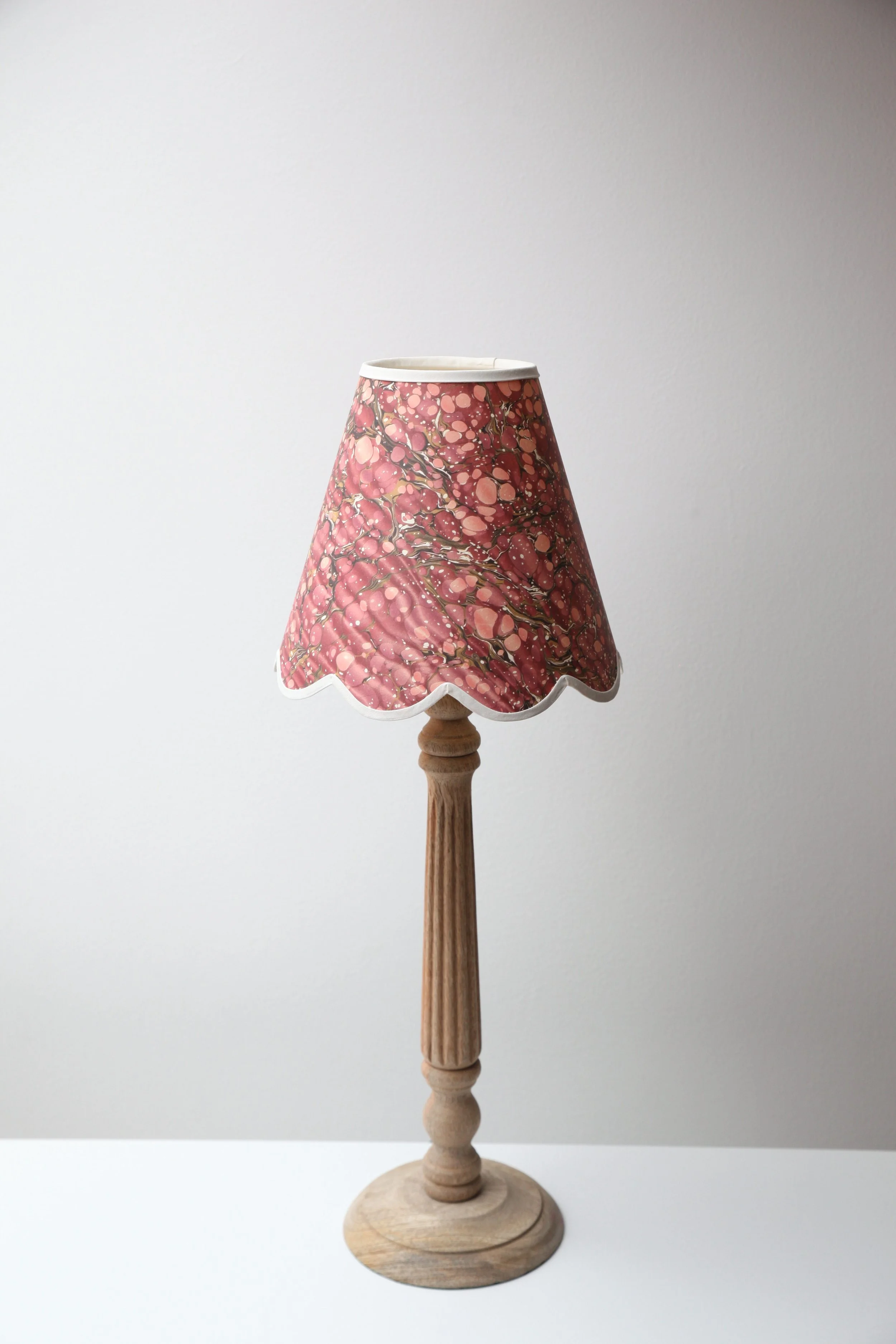 B R Y T E use beautiful hand marbled artisan papers to make one off lampshade designs often featuring a pretty scalloped edge. Each sheet of marbled paper is completely unique, no two pieces are the same.
